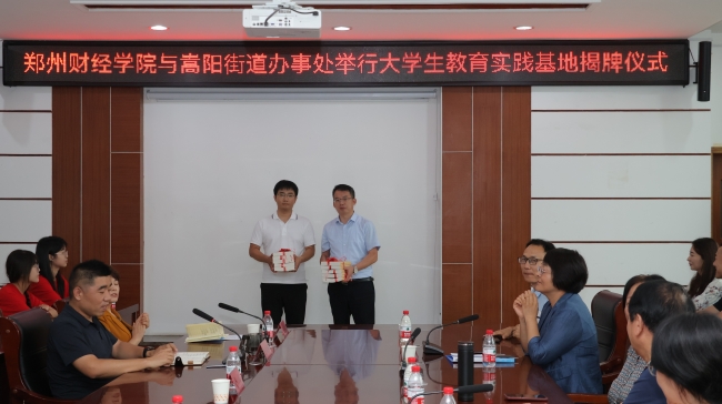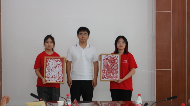 活动最后,登封市政协副主席董辉与万象城副校长陈静共同为教育实践基地揭牌,共青团登封市委向万象城教育学院实践团赠送《习近平著作选读》,实践团成员为共青团登封市委送上精心创作的剪纸作品《龙凤呈祥》。