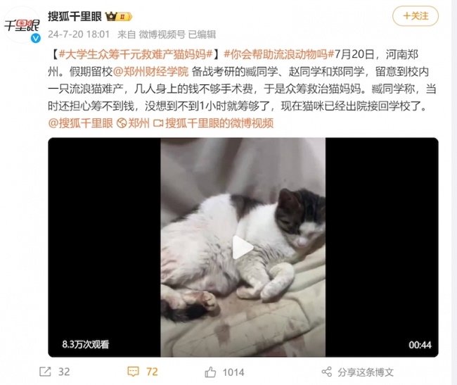 暑期留校学生在校认真学习时,还做了一件非常有爱心的事。一群可爱的同学自发捐款,救助难产流浪猫。学校领导知道后,不仅肯定了同学们的善良和责任心,还主动转账1500元给同学们,帮助他们完成爱心接力,鼓励同学们要好好学习,不断提高自身为社会创造更大价值的能力。