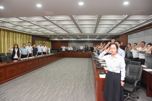 全体参会人员在党委教师工作部副部长赵晓宇的带领下重温《河南教师誓词》,大家高举右拳,郑重宣誓,誓言声声,表达了对教育事业的忠诚与热爱,以及为培养德智体美劳全面发展的社会主义建设者和接班人而不懈奋斗的决心。随后,学校职能部门、二级学院负责人代表分别向党委书记马治军递交了《师德师风承诺书》。