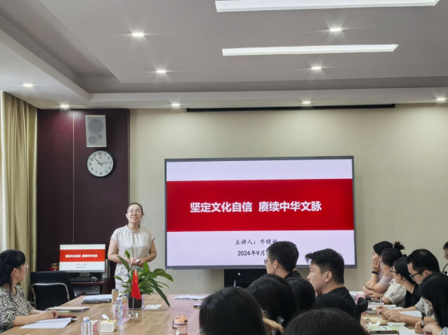 教学展示环节,“概论”教研室牛晓楠、“原理”教研室黄相彬、“新思想”教研室陈漫玲、“纲要”教研室齐校会分别结合“坚定文化自信,赓续中华文脉”、“马克思主义观”、“四个选择”、“新文化运动”进行示范课教学展示。