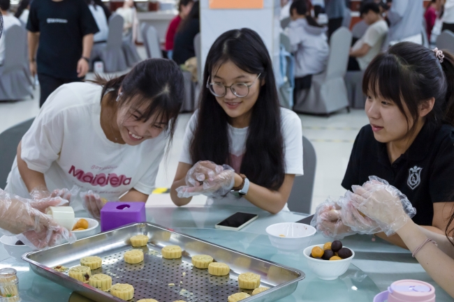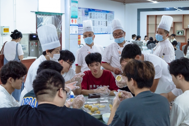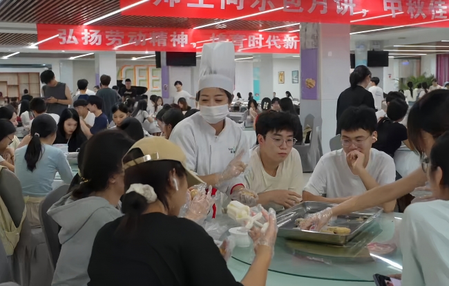 9月9日至10日,全校学生在丰泽餐厅三楼举行制作中秋月饼活动。学生们分组围坐,体验从包馅到成型再到烘焙的全过程,将美好的中秋祝福包入月饼中,通过实践体验劳动教育的意义,在轻松愉快的氛围中,提升了对传统节日文化的认知力与认同感,共同留下了一段难忘的节日回忆。