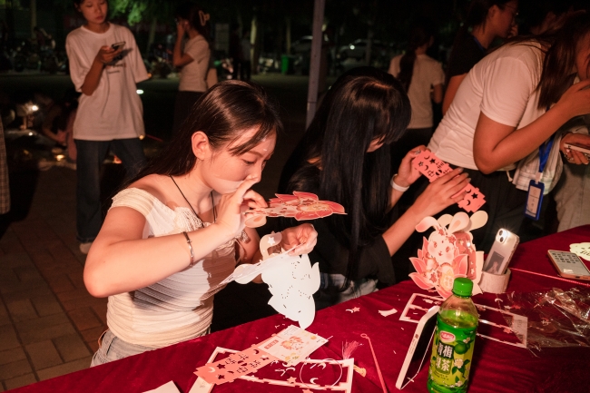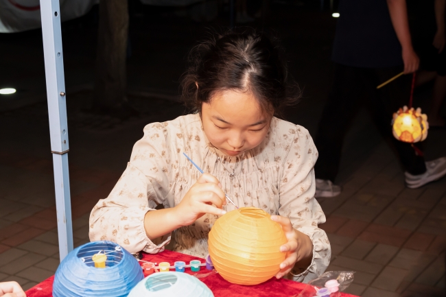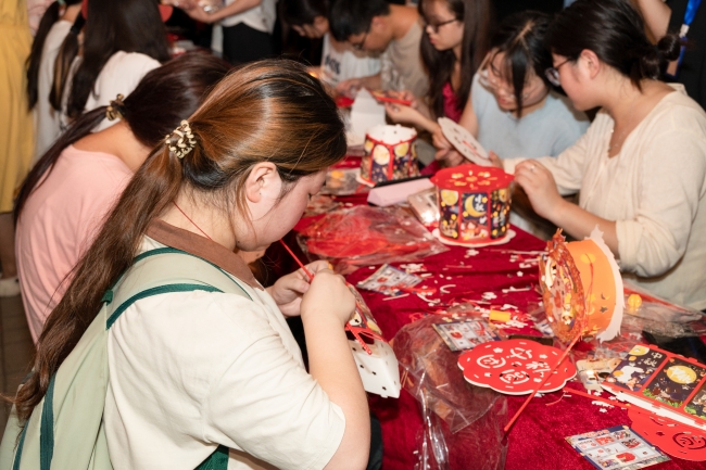 活动现场,各社团精心准备了极具中秋节日特色的手作体验项目——花灯和香囊制作,同学们齐动手,整理材料、设计图案、精心糊纸、串灯挂彩,一盏盏蕴含祝福寓意的精美花灯逐一绽放。同学们在用双手感受劳动乐趣的同时,体会着传统文化的魅力和中秋佳节浓厚的文化氛围。