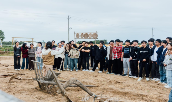 “农耕体验”环节中,在指导老师的讲解下,学生们了解了播种、收割、脱粒等农产品加工过程、农具的特点及使用方法,亲身体验耕种等农业生产活动,感受农民的辛勤与不易。