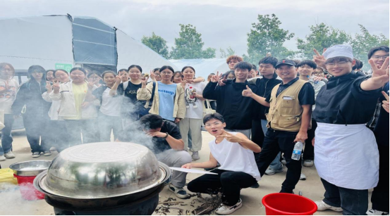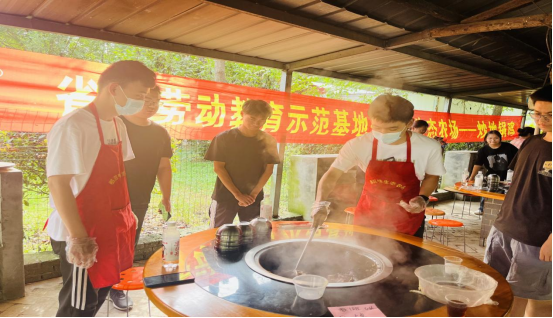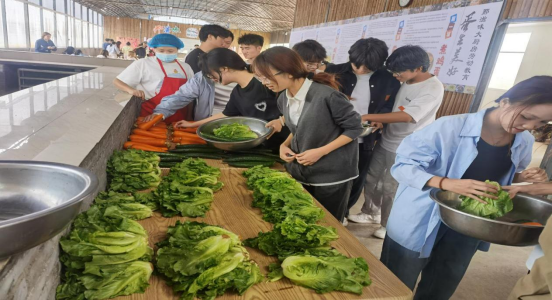 在“美食制作”环节,学生们分组完成家常菜、河南烩面、胡辣汤、烤红薯、煮花生等美食制作,在家常菜学习制作中,学生需要根据采摘的蔬菜,在有限的时间展示他们的烹饪技艺。学生认真学习美食制作方法与技巧,在洗菜、切菜、拌菜等环节上分工明确,通力配合,最终展示自己的劳动成果。