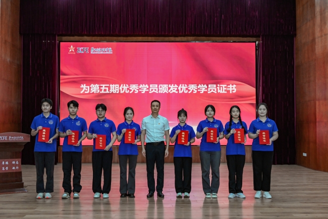 校团委书记周二涛为第五期学员代表颁发结业证书