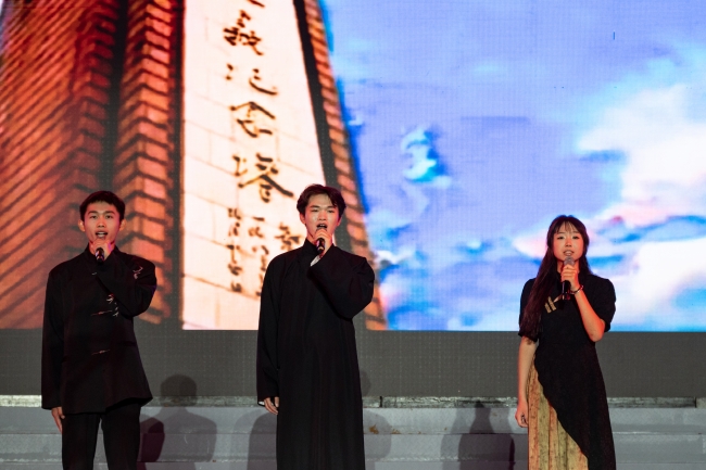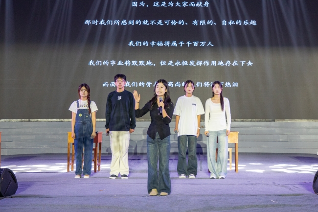 校广播站以深情饱满的朗诵《红船》,带领全场穿越历史长河,深情回顾了中国共产党从红船启航至今的光辉历程,通过声音的高低起伏,情感的细腻把控,让这段历史在现场观众心中生动再现。