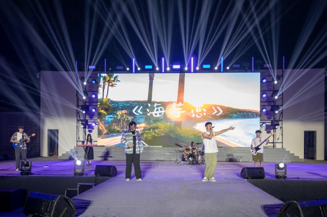 大学生艺术团乐队以一曲《再飞行》的激情澎湃与《海芋恋》的深情款款,将两种截然不同的情感完美融合。激昂的吉他旋律划破夜空,鼓点犹如心跳般强烈,激活了观众的热情与活力。
