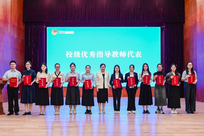 校监事会副主席兼教务处处长王艳珍为优秀指导教师代表颁奖