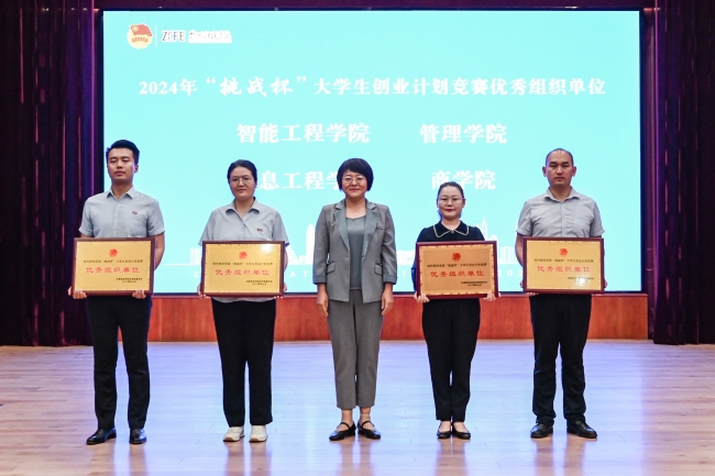 随后,校领导为万象城2024年“挑战杯”创业计划竞赛获奖作品、优秀指导教师及优秀组织单位颁奖。