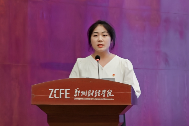 颁奖仪式结束后,优秀学生代表武姿君进行发言,她结合自己的参赛经历分享了在创新创业道路上的成长与蜕变。她鼓励广大郑财学子在创新创业的道路上不断探索,不断超越,让青春在奋斗中闪耀光芒!