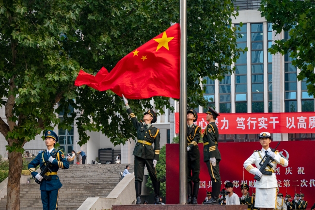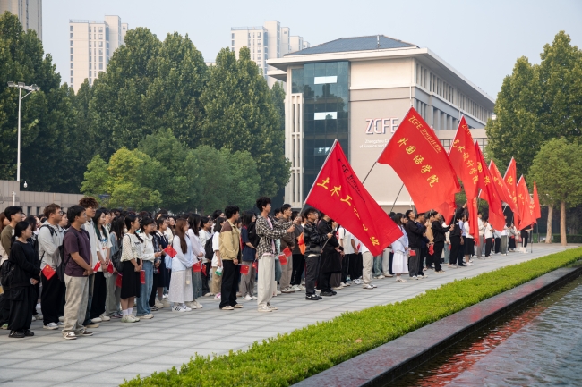 “五星红旗迎风飘扬,胜利歌声多么响亮;歌唱我们亲爱的祖国,从今走向繁荣富强......”伴随着《歌唱祖国》的悠扬旋律,全场师生高声合唱,共同挥舞着手中国旗。此次活动在大合唱中圆满结束,歌声激情澎湃,彰显了郑财学子的精神风貌和对伟大祖国的无限热爱。