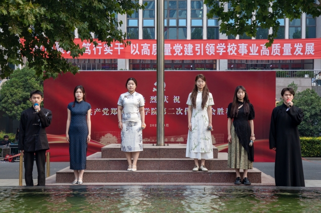 校广播站带来慷慨激昂的《红船》朗诵表演,他们用铿锵有力的声音,生动再现了中国共产党在红船上诞生的历史瞬间,表达了对党的忠诚和对祖国的热爱,饱含着青春的力量和投身建设国家的庄严承诺。