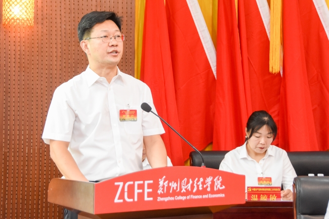 王飞代表省委教育工委、省教育厅向大会的召开表示热烈祝贺,向全体党员和广大师生员工致以崇高敬意。他指出,学校党委坚持以习近平新时代中国特色社会主义思想为指导,坚持“围绕中心抓党建,抓好党建促发展”的理念,团结带领全校师生员工,勤奋务实、开拓进取,为国家和社会培养了一大批德才兼备、适应现代化经济社会发展的应用型人才,为我省民办教育事业和经济社会发展作出了积极贡献。他还对即将产生的新一届党委、纪委提出四点希望,一是要发挥好党委政治核心作用。二是要落实好立德树人根本任务。三是要全力推动学校事业高质量发展。四是要继续推进全面从严治党向纵深发展。他希望新一届党委团结和带领学校全体党员和广大师生员工踔厉奋发、勇毅前行,聚焦新目标、开启新征程,为建设省内一流、国内知名、特色鲜明的高水平应用型本科高校作出新的更大贡献。