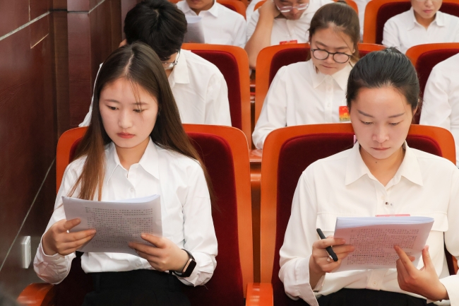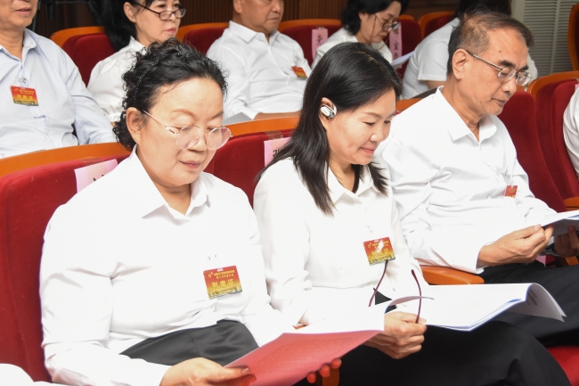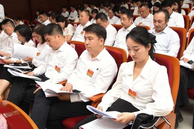 与会代表认真聆听讲话、研读工作报告