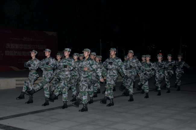 9月29日晚上,全体国旗护卫队队员在校园文化广场进行汇报演出,校团委负责老师和600余名学生一同观看了演出。