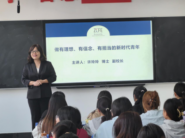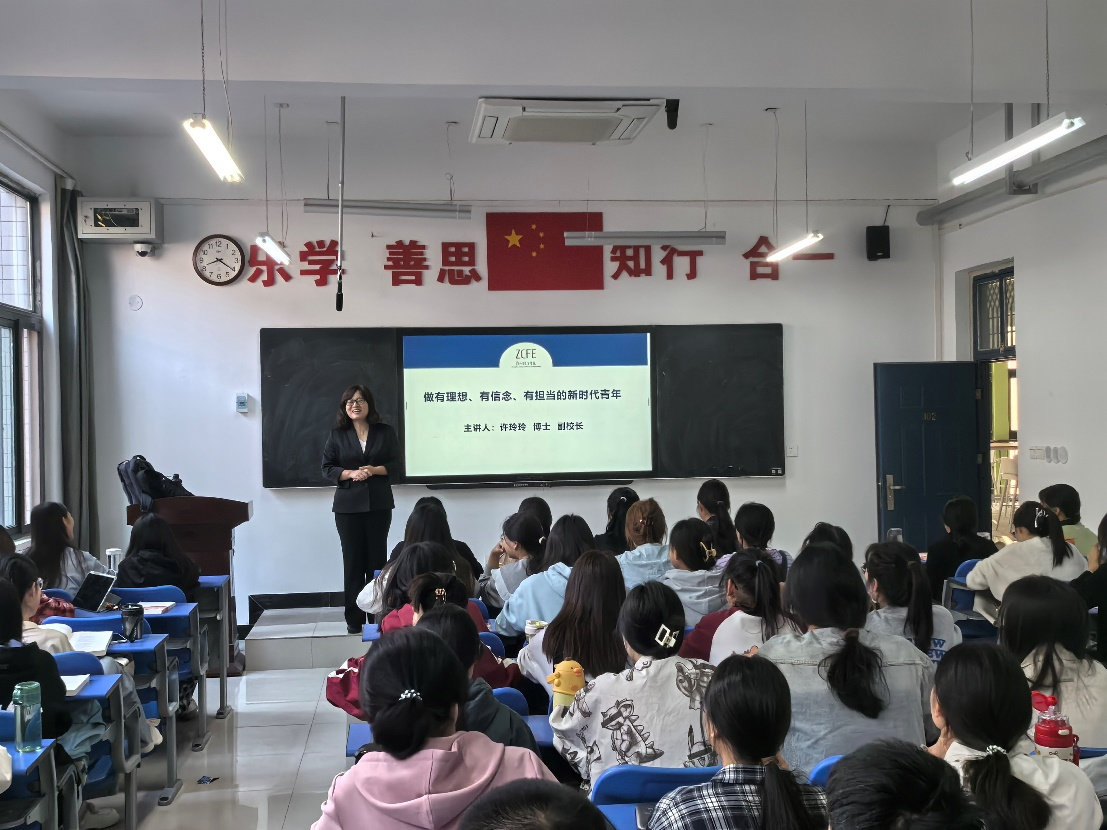 10月11日,副校长许玲玲走进思政课堂,以《做有理想、有信念、有担当的新时代青年》为题,为万象城2022级现代教育技术本科1班学生讲授思政课。