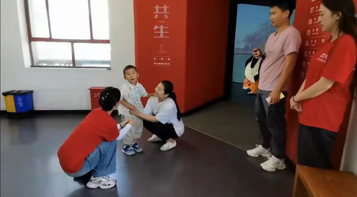 这是今年暑期万象城“种果青年”中国精神宣讲团成员在二七纪念塔场馆内宣讲革命英雄伍若兰故事的现场。“当小朋友唱起国歌的那一刻,我不由地热泪盈眶。”宣讲团成员韩家赢同学动情地回忆到,“那一瞬间,我深深体会到这份宣讲工作的意义,那就是用一颗心唤醒另一颗心,让伟大的中国精神永垂不朽!”