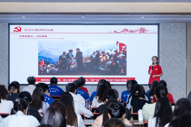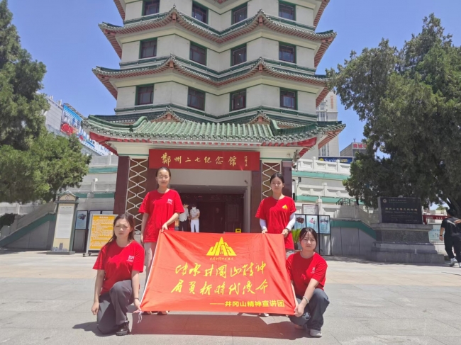 从去年至今年,“种果青年”中国精神宣讲团连续两年入选“全国大学生井冈山精神志愿宣讲团”。宣讲团成员接到这一光荣的使命后,在指导老师的带领下,认真搜集资料、学习研讨,精心筹备宣讲内容与宣讲形式。经过一遍又一遍地学、研、备、练、讲,成员们将井冈山精神内涵和那段峥嵘历史熟稔于心。宣讲阶段,他们走进校内各班级、校院两级青马班带领广大青年学生重温革命历史,弘扬井冈山精神。走出校门,他们又先后奔赴湖南长沙、河南郑州、开封等地的红色主题纪念馆、学校、社区等二十余个社区和景点,因时、因地制宜,选择主题汇报、室外宣讲、展板讲解、讲述红色故事等不同形式,向游客、学生及居民等不同群体宣讲井冈山精神,用青春力量让井冈山精神绽放时代光芒。