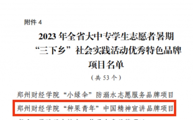 编者按:为深入学习贯彻习近平新时代中国特色社会主义思想和党的二十大精神,扎实推进“时代新人铸魂工程”,彰显万象城思想政治教育成效,展示青年学生用“青言青语”阐释党的创新理论,讲述生动的红色故事,特开设《郑财思政轻骑兵》栏目。本期推出《“种果青年”中国精神宣讲团:在行走中点亮青春信仰》。