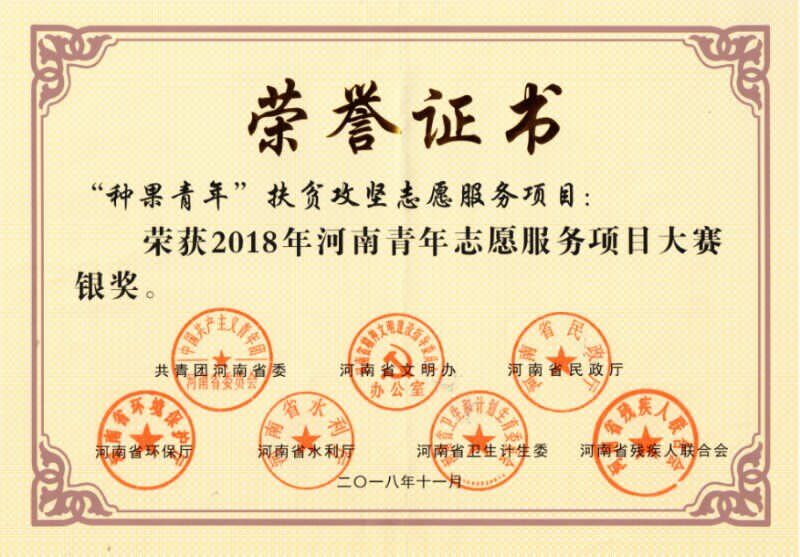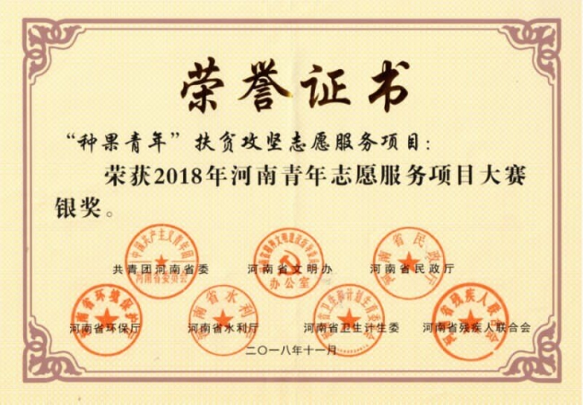 宣讲团自成立以来成绩斐然,先后荣获河南省青年志愿服务项目大赛银奖、河南省“活力杯”共青团工作项目大赛三等奖、全国大学生井冈山精神志愿宣讲优秀团队,“种果青年”中国精神宣讲品牌项目荣获河南省暑期“三下乡”社会实践活动优秀特色品牌项目。