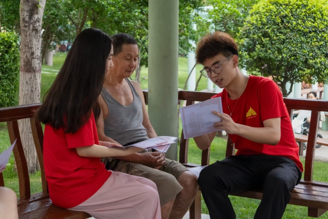 在惠济区长兴路街道一个社区宣讲井冈山精神的经历给团队成员刘星钰留下了深刻的印象。当时宣讲团成员正在为一群老人和小朋友讲述“毛委员和八角楼”的故事,当注意到不远处有一位慈祥的爷爷正笑意盈盈地看着大家时,团队成员就走上前为爷爷发放宣传页。令大家没想到的是,这位老爷爷还分享了他作为过来人对井冈山精神的理解,并勉励同学们“世界是你们的,也是我们的,但是归根结底是你们的。”“那位爷爷的话久久萦绕在我的心头,我们作为新时代青年,就应该在大有作为的时刻,为中国式现代化挺膺担当,就应该用实际行动传播中国精神。”刘星钰同学由衷地说。