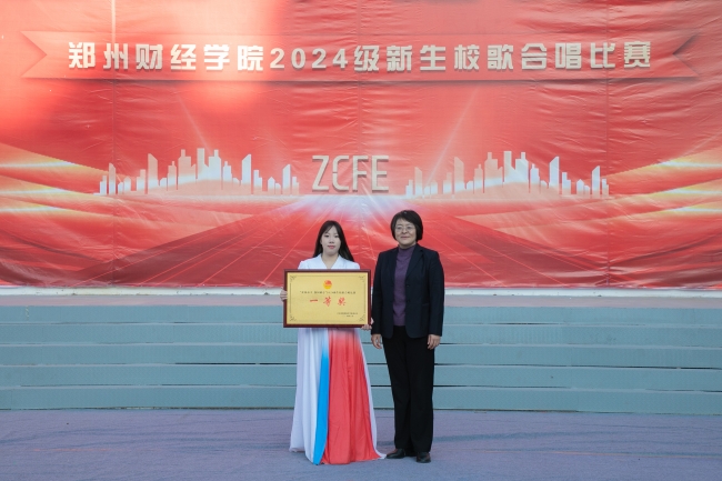 公共艺术教学部主任王艳霞为二等奖获奖学院颁奖