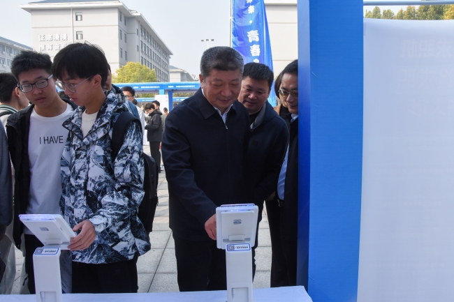 校监事会主席李庆阳及副校长陈静、卢文邦深入双选会现场指导工作,了解企业的招聘情况、用人标准以及对学校人才培养和就业服务的意见和建议等,并与学生亲切交流,鼓励学生积极求职、勇敢尝试,实现人生理想。