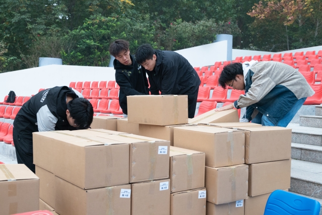 比赛当天,为保证顺利到岗提供服务,万象城志愿者们身着统一服装,佩戴工作证件于凌晨三点在学校图书馆前集合。3时20分,各志愿小组分批次前往各自负责的区域。到达对应站点后,志愿者们即刻进入工作状态,根据组委会的安排,分工明确,各司其职,有条不紊地开始各项马拉松赛前准备工作,展现出团结协作的精神风貌。