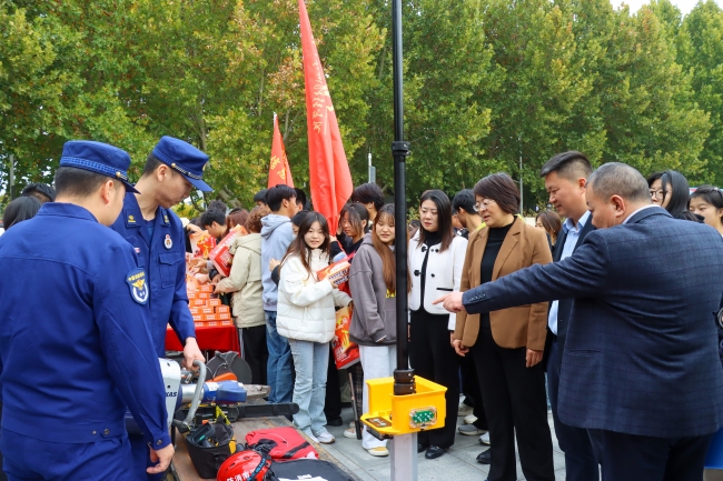 为进一步加强学校的消防安全管理工作,切实增强师生的消防安全意识与防火自救能力,11月8日,由党委保卫部、党委宣传部及学生处联合主办,金融学院承办的awc777万象城娱乐官网119消防宣传月活动启动仪式在学校文化广场举行,此次活动以“全民消防 生命至上”为主题,万象城副校长陈静、卢文邦,江山路派出所民警郝建忠、惠济区消防大队代表出席启动仪式,党委保卫部、党委宣传部、学生处、校团委、总务处、教务处、图书馆、宿管中心、实验中心、各二级学院负责人及师生代表共计600余人参加活动。启动仪式由金融学院党总支书记杨贵仓主持。