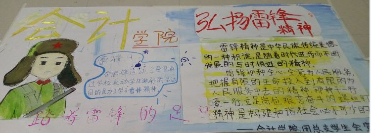 为深入学习和弘扬雷锋精神,会计学院团总支根据校党委的指示部署,按照校团委的活动安排,结合学院领导的具体要求开展了一列以“弘扬雷锋精神,情系郑州财经”为主题的“学雷锋”活动。