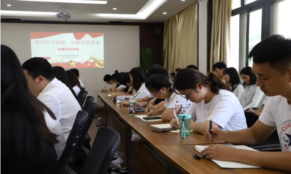 主题教育活动中,党总支对照学校党委目标要求,强力推动主题教育落地见效,坚持学思用贯通,知信行统一,始终把学习贯彻习近平新时代中国特色社会主义思想作为锤炼忠诚灵魂的重要理论。党总支召开全体党员大会“不忘初心、牢记使命”主题教育动员会和“学习时代楷模,争做合格党员”主题教育党日活动,组织全体党员师生观看了时代楷模张富清先进事迹视频和时代楷模陈立群先进事迹视频,感悟初心力量,重温入党誓词。通过学习,党员教师们纷纷表示潜心教书育人,为党育人、为国育才。党员学生们表示要薪火相传、砥砺奋进、追求卓越。