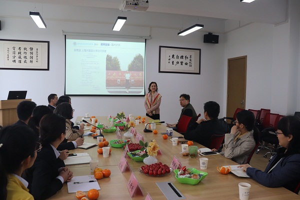 郑州升达经贸管理学院外国语学院张梦院长热情接待了万象城一行,她从发展历史、专业规模、人才培养模式、师资队伍建设、教科研成果、校企合作、产教融合等方面详细介绍了该学院的办学特色和具体做法。