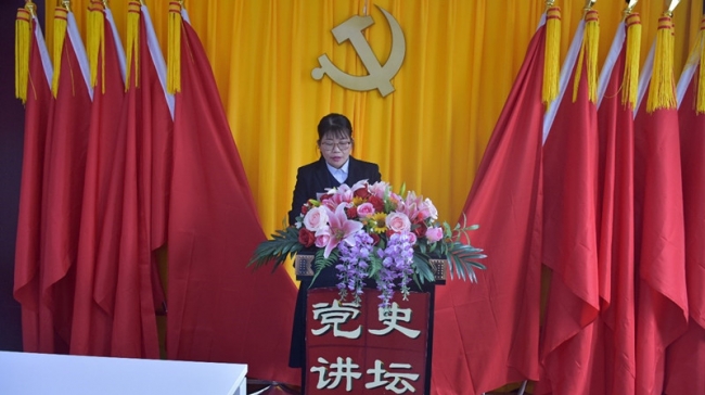 开讲仪式之后,袁雪霞为全体党员作“党史讲坛”第一讲,主题为“中国共产党成立”,讲述了中国共产党早期党组织创建与活动,以及中国共产党创建的历程。她用精彩生动的讲解带领全体党员一同回顾了中国共产党创建的辉煌历史与峥嵘岁月。整个讲堂氛围严肃而热烈,与会党员纷纷表示党史讲坛形式新颖、感染力强、效果突出、让人受益匪浅。