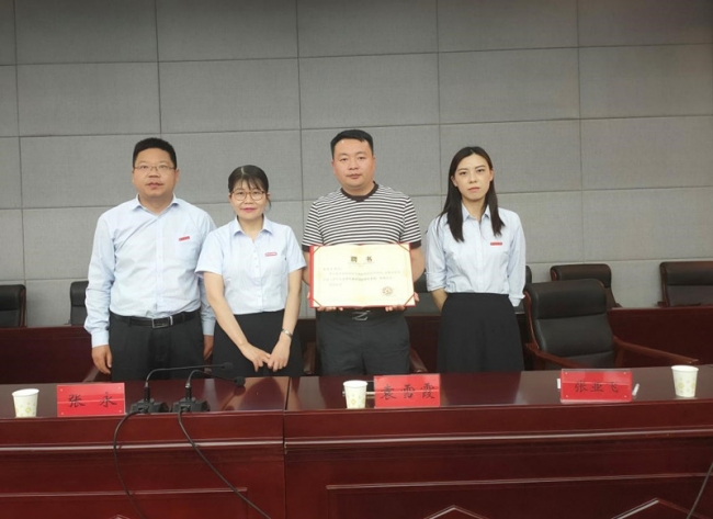 交流会前,学院党总支书记袁雪霞、副书记张永共同为张亚飞校友颁发了“信息工程学院就业创业指导老师”聘书。