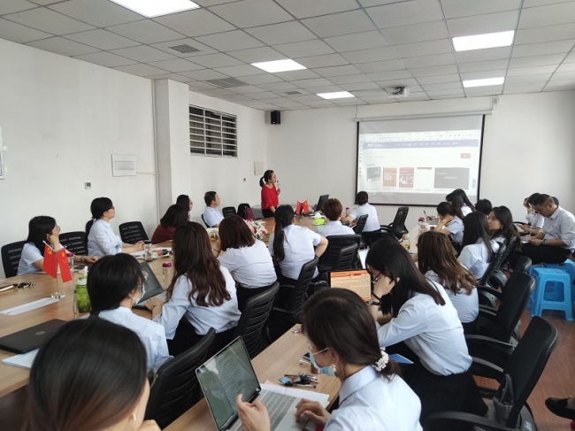 为进一步贯彻落实学院信息化教学改革,推进信息技术与教育教学的深度融合,5月18日下午,外国语学院邀请外教社严彩凤老师在行政楼D座5楼会议室为学院英语任课教师进行WE外语智慧教育平台的使用培训。外国语学院院长邢理平、副院长黄雪娟、各教研室主任及全体外语教师参加本次培训。