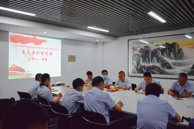 为深入开展党史学习教育,庆祝中国共产党成立100周年,6月6日,机关三总支书记柴骞为支部全体党员上党课。