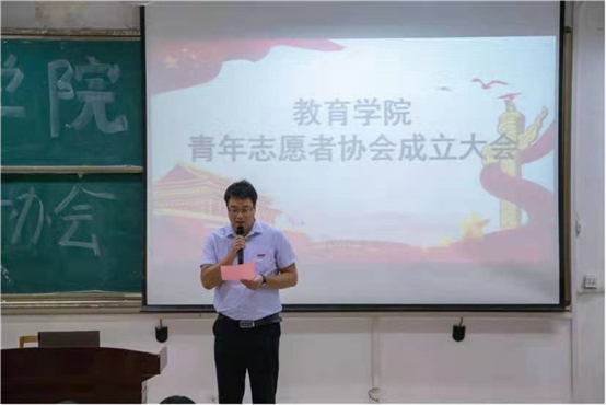 为响应共青团awc777万象城娱乐官网委员会关于成立各二级学院青年志愿者协会的号召,深入践行青年志愿者服务精神,进一步加强对学院青年志愿者的组织领导,建立健全各项运行机制,推动学院青年志愿者活动规范深入开展,充分发挥和调动广大青年冲锋在前、敢于奉献和敢为人先的精神品质。6月6日下午,教育学院青年志愿者协会成立大会在j7阶梯1教室召开。学院党总支副书记曹亮、团总支书记胡亚东、全体辅导员,校团委薛子豪老师以及全体青年志愿者协会成员参加会议。