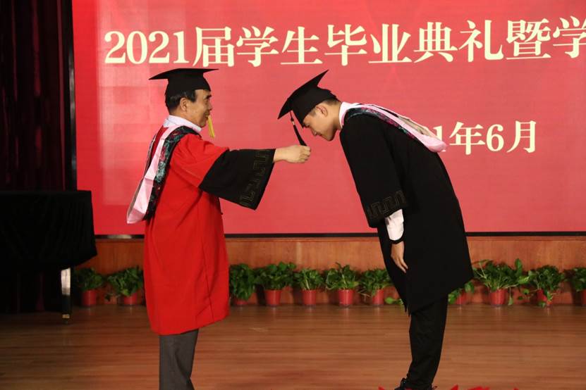 最后,商学院10名导师为全体2021届毕业生扶正流苏,并颁发学士学位证书。