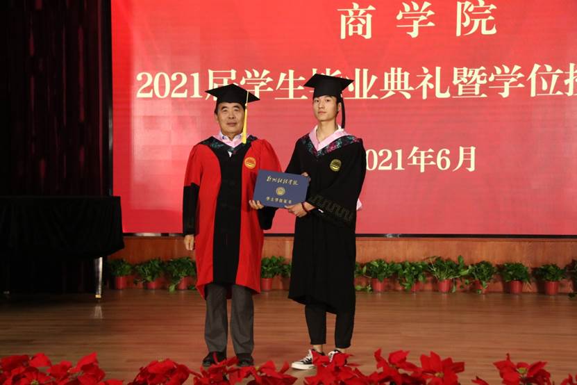 6月20日,商学院2021届学生毕业典礼暨学位授予仪式在图书馆学术报告厅隆重举行。商学院领导、全体教职工、2021届本专科毕业生参加了典礼。学院党总支书记宋艳萍主持毕业典礼。