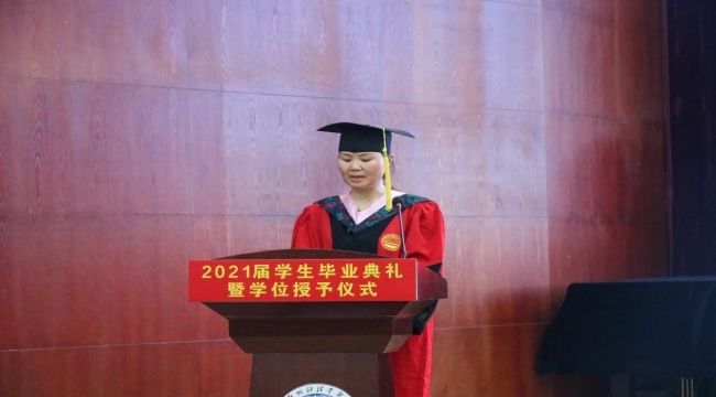 仪式在庄严的国歌声中拉开了帷幕。金融学院副院长张丽宣读了《关于授予金融学院2021届普通本科毕业生学士学位的决定》。