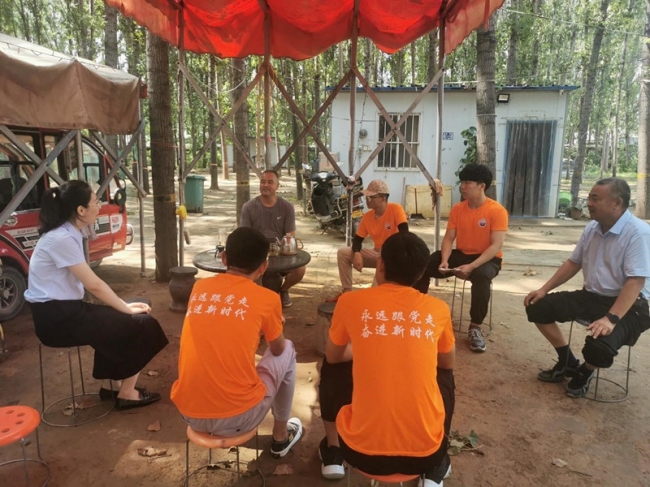 实践团带队老师为保合寨村村委会党员干部宣讲红色知识