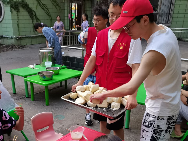 智能工程学院20级车辆工程本科1班李康协助发放食物