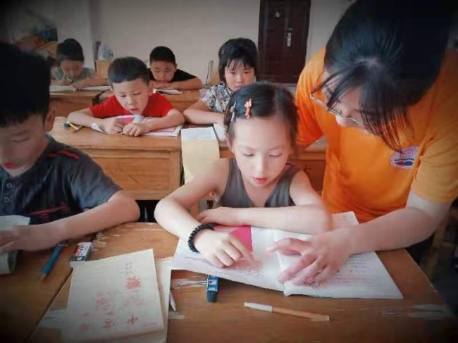 在安阳市支教点,支教队员针对不同层次的学生采取分类指导、以高带低的教学方法,一方面教师分层传授基础知识,另一方面让各年级学生自发研讨,传输经验,分享心得,提升学习效率。