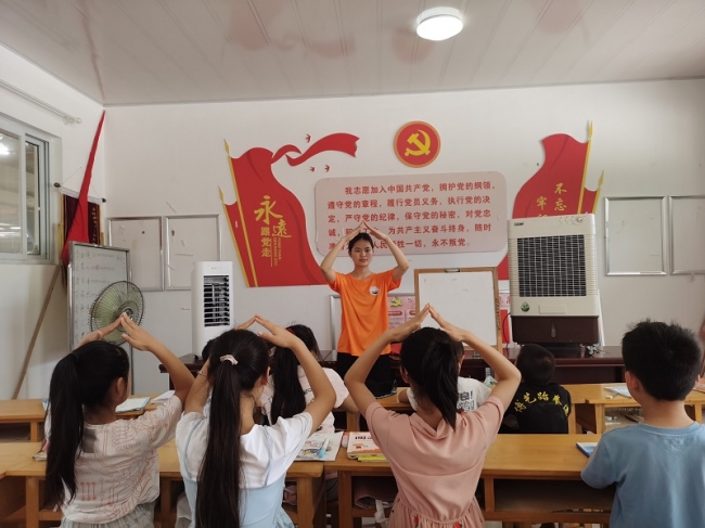 在济源市支教点,队员们结合时代背景,为小朋友们开展了“红歌分享会”、“红色经典故事分享会”、“我爱祖国”等活动,用歌声、舞蹈表达对党和国家的无尽热爱;用学党史知识的形式让小朋友们感受党和国家走过的艰辛历程,更加珍惜今天来之不易的美好生活。