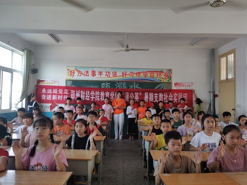 此外,在新乡、开封、商丘、平顶山等地的支教队,也始终秉持“为党育人,为国育才”的使命,将在校所学的知识、技能外化于行动,充分运用到支教活动中去,在收获实践经验的同时,达到了预期的支教效果;在扎实基础学识的同时,更多了几分浓厚的爱党爱国情怀。
