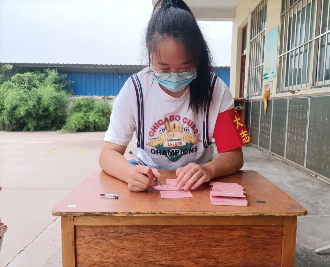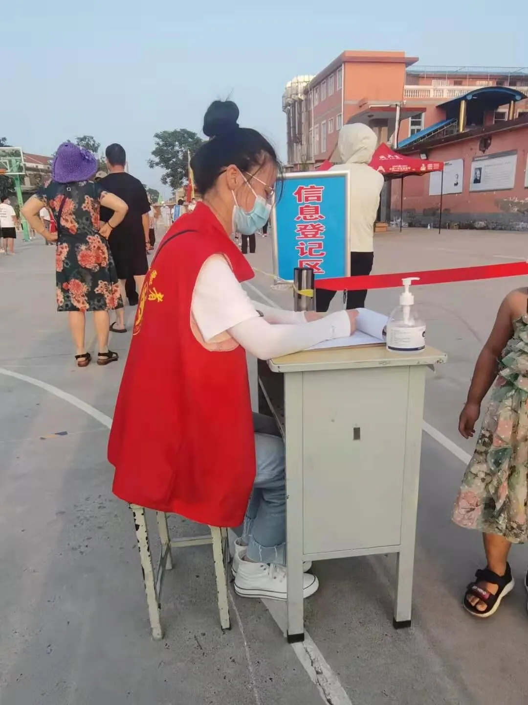 20级会计本4班的张梦燕同学在开封市尉氏县朱曲镇焦庄村参加志愿服务活动。她说:“8月10号,家乡要进行第二次核酸检测,我和另一个小伙伴主动找到了村委会,申请参加志愿服务活动。我主要负责核酸检测的登记工作,虽然天气很热,但是想到自己为家乡的核酸检测工作出了一份力,心里觉得非常开心。”
