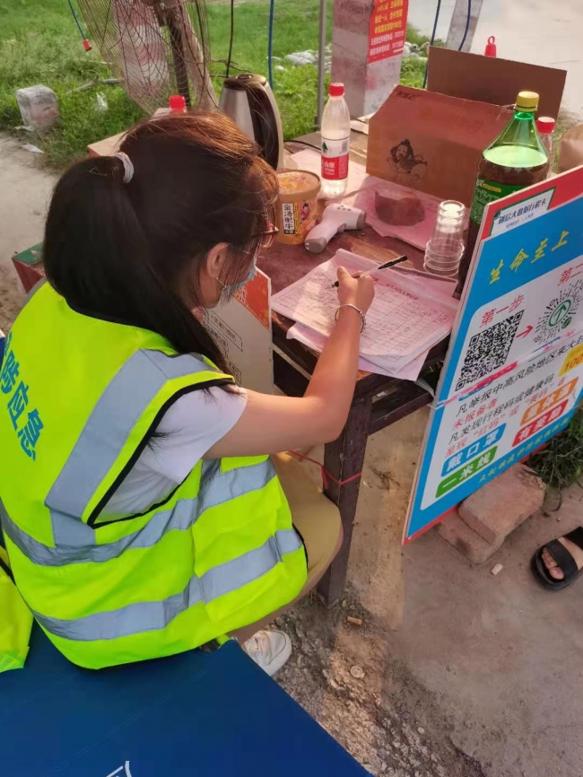 20级会计本4班的薛盈盈同学在驻马店市确山县参加疫情防控志愿服务工作。她说:“疫情来袭的时候,听说村口疫情防控执勤点人手严重不足,我立即就向村委会提出了做志愿者的申请。在执勤卡点,白天天气炎热,夜里蚊虫叮咬,但是想到自己的努力,可以给村庄减少一点风险,就觉得这些困难不算什么了。相信在所有人的共同努力下,我们一定会打赢这场战役。”