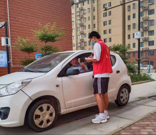 王轶飞同学协助工作人员挨户排查行程码