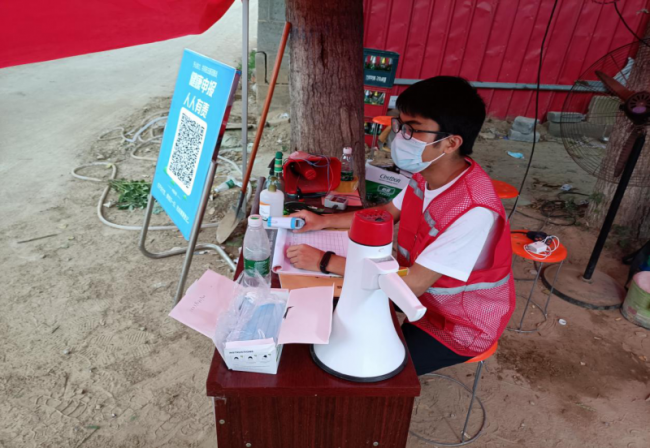 20级工商管理本科2班刘辉在郑州新一轮疫情防控工作开始时毫不犹豫加入防控疫情志愿团队。他被分配到到一个连接几个村子、日常人流量比较多的路口监测点,每天的任务就是让来往人员进行扫码登记,测量体温,喷洒消毒液。他说:“在之前防汛抗洪时期,我就主动做一名志愿者,参与搬运救灾物资,进行灾后防疫防病知识宣讲。在这次新一轮疫情来临时,作为青年大学生的我,更应该冲在最前面,为疫情防控贡献一份力量。只要穿上志愿者衣服,就把任务做到最好,这是一份责任。”