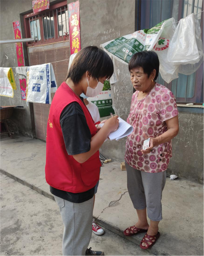 2021年7月31日郑州二七区和六院爆发疫情之后,商学院2020级营销专业专升本5班学生窦康洁,积极响应国家及学校号召,主动前往村党支部防疫站点报名参与志愿者活动。在此期间,窦康洁帮助排查过路车辆及信息登记工作,并带领全家人配合村支书对全村进行防疫相关知识普及工作。